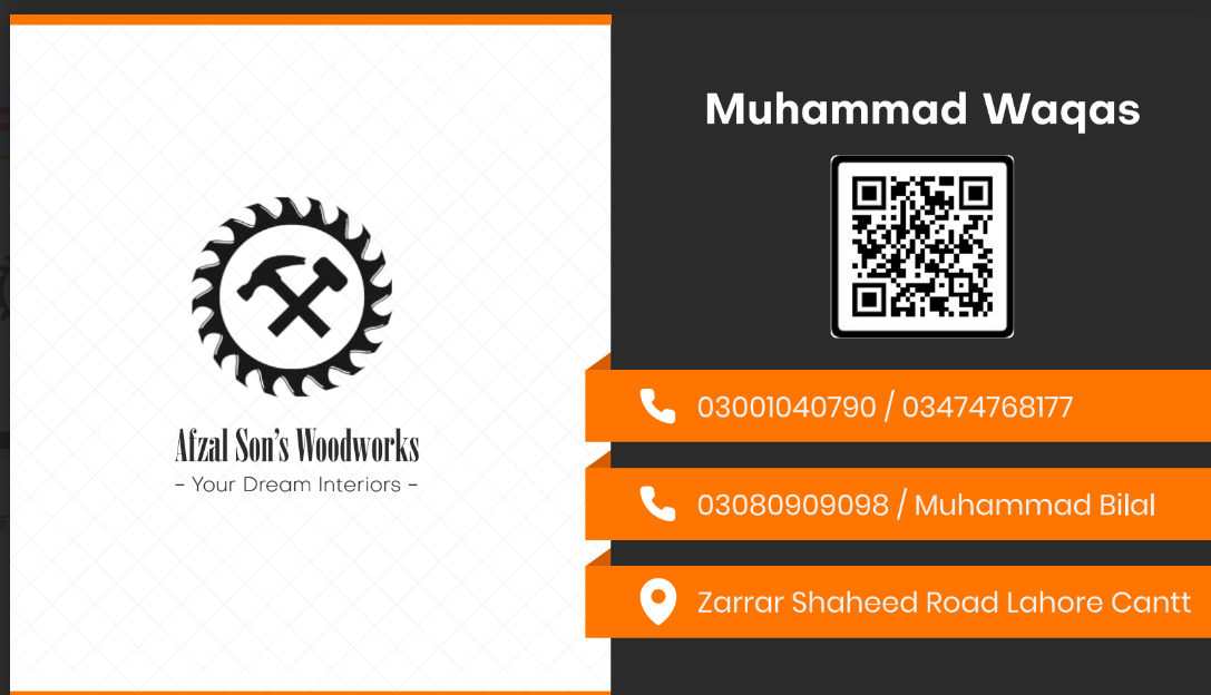 At Afzal Sons Wood Works, we pride ourselves on offering professional and reliable carpenter services right at your doorstep. Our skilled team, led by Expert Carpenter Muhammad Waqas, is dedicated to providing top-quality craftsmanship for all your home renovation needs.