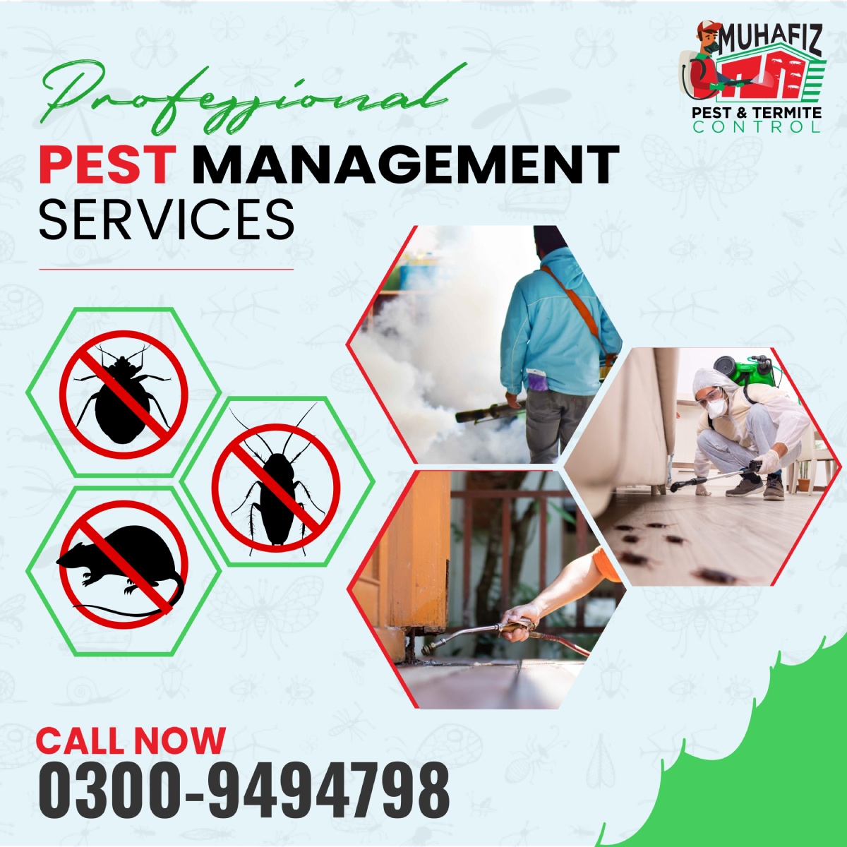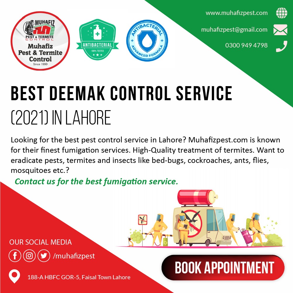 Muhafiz Pest & termite control is a best pest control company located in Lahore, Punjab, Pakistan. We provide the most hygienic protection from pest control, termite control and deemak control services to the houses, workplaces, gardens etc.