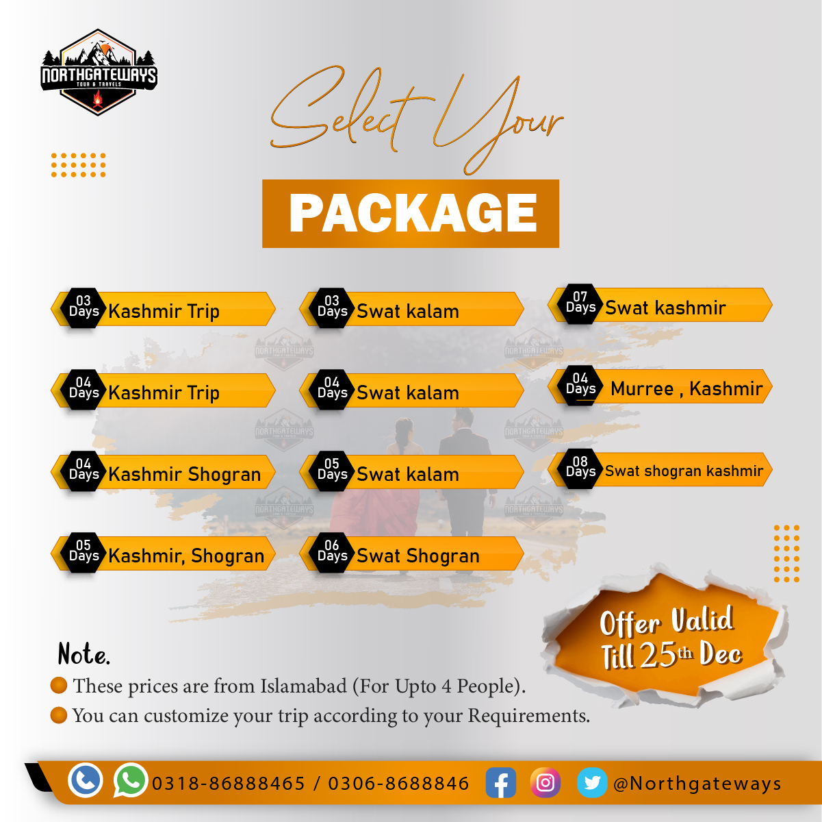 North Gateways stands out as a premier tour and travel company in Pakistan, providing fantastic tour packages to explore the breathtaking Northern Areas of the country. Easily book trips, accommodations, rental vehicles, and activities at a reasonable price with us. Your gateway to unforgettable experiences awaits!