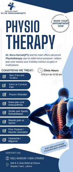 Physiotherapy by Dr. Danish provides expert, personalized physiotherapy services in Lahore, specializing in pain relief, rehabilitation, and improved mobility. Dr. Danish offers individualized treatment plans utilizing the latest evidence-based techniques to help you recover quickly and achieve your optimal physical well-being.