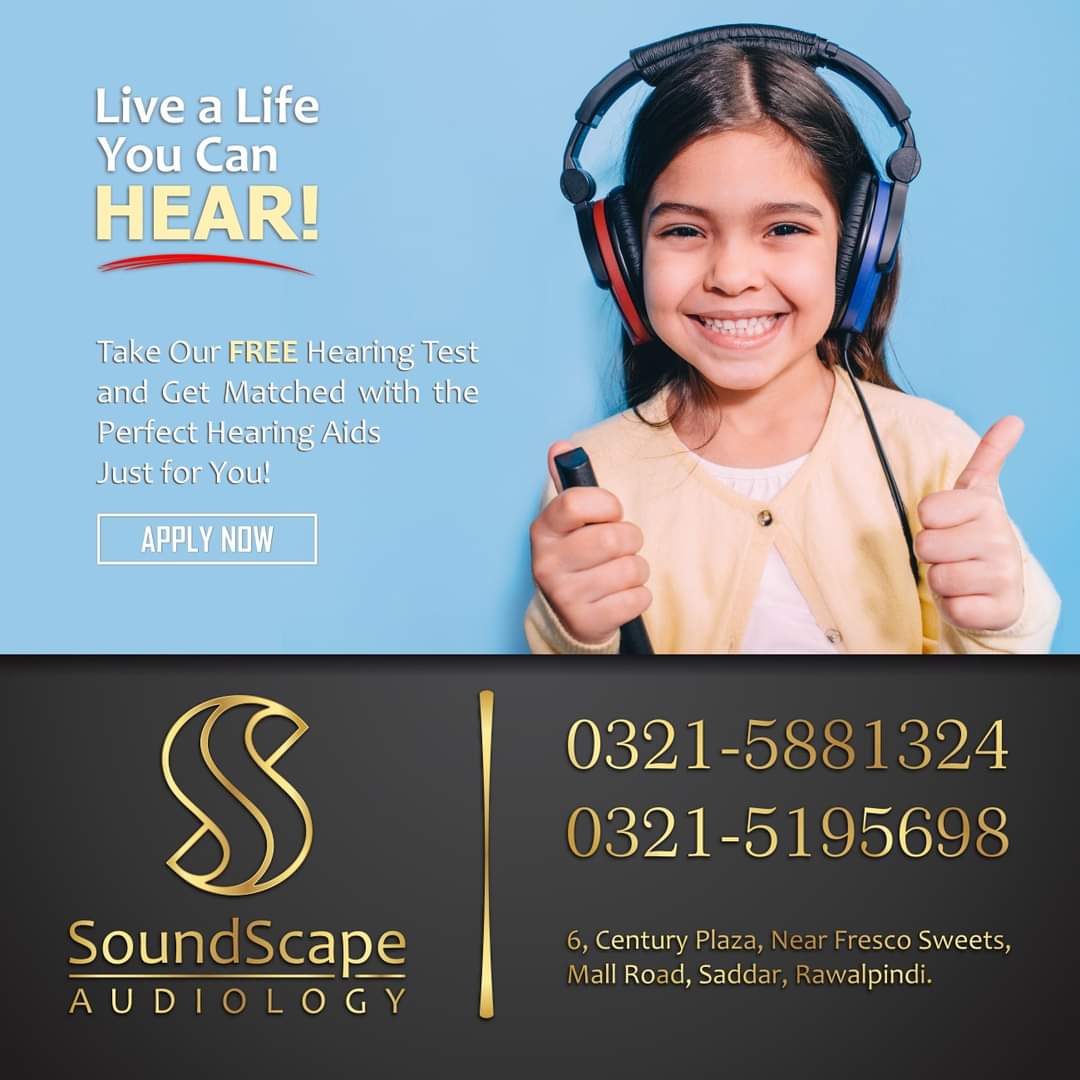 Soundscape Audiology is a professional hearing care clinic located in Saddar, Rawalpindi, Pakistan. We are dedicated to improving lives through better hearing. With a team of experienced professionals and the latest diagnostic technology, we offer complete hearing solutions for people of all ages.