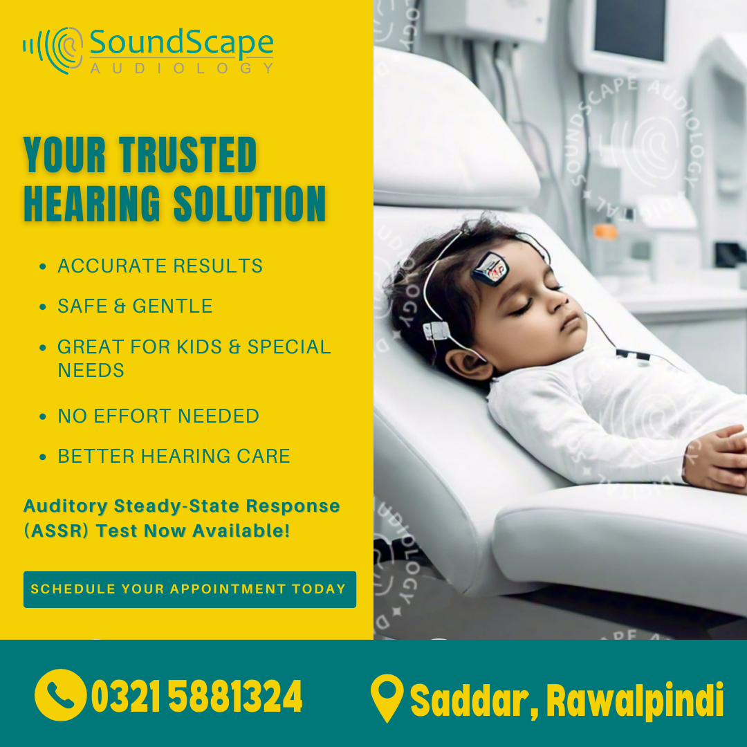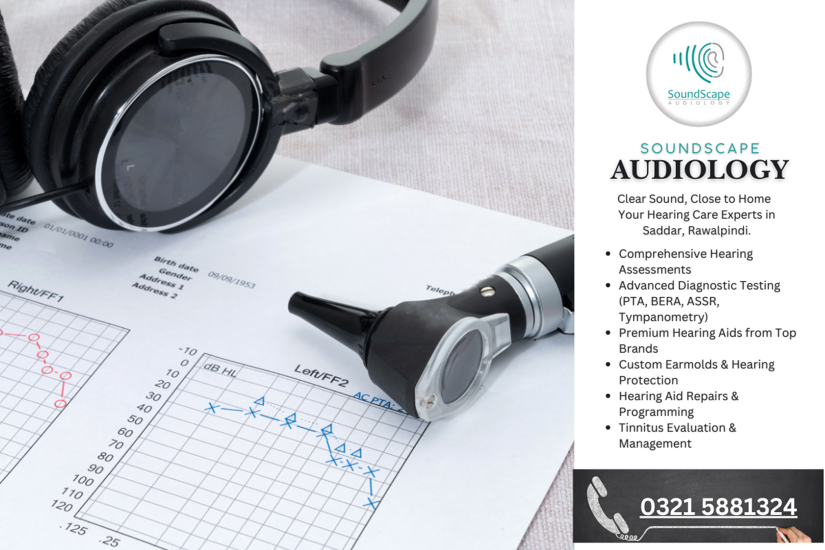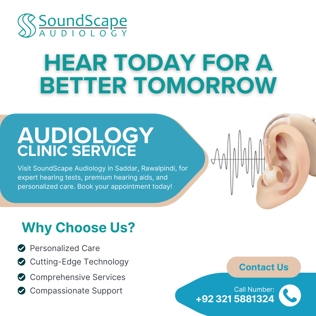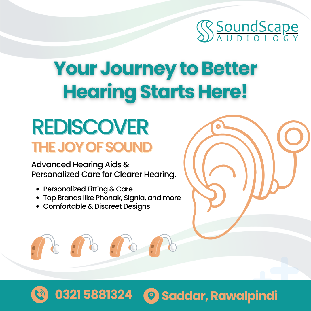 Soundscape Audiology is a professional hearing care clinic located in the heart of Rawalpindi. We specialize in diagnosing and managing hearing-related issues through expert testing, modern hearing aids, and personalized care.