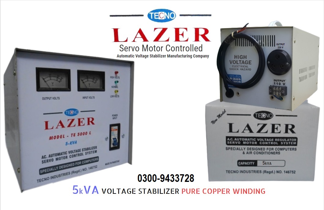 SERVO MOTOR controlled, Automatic Voltage Stabilizers & Regulators. (pure copper) Since 1986